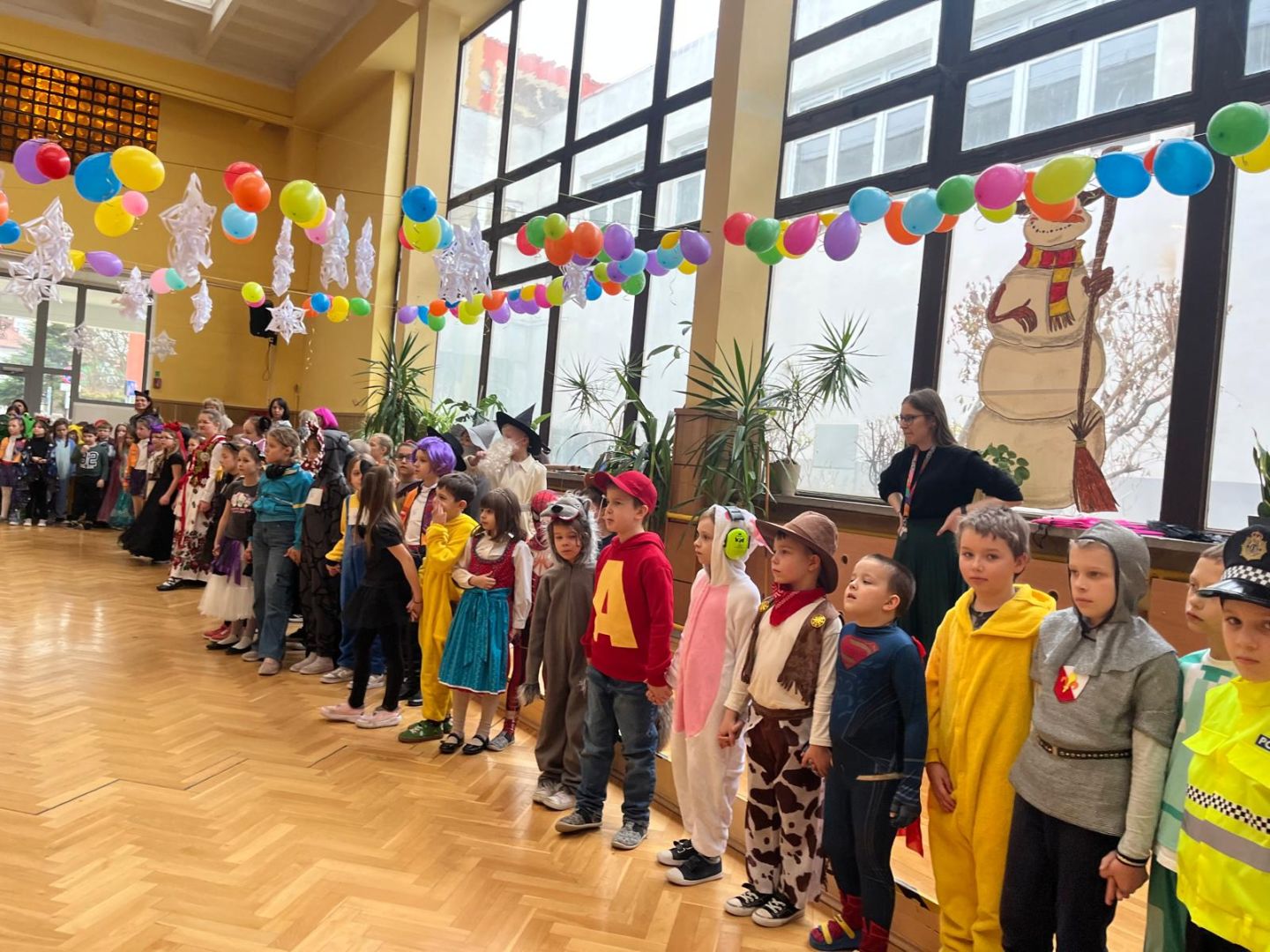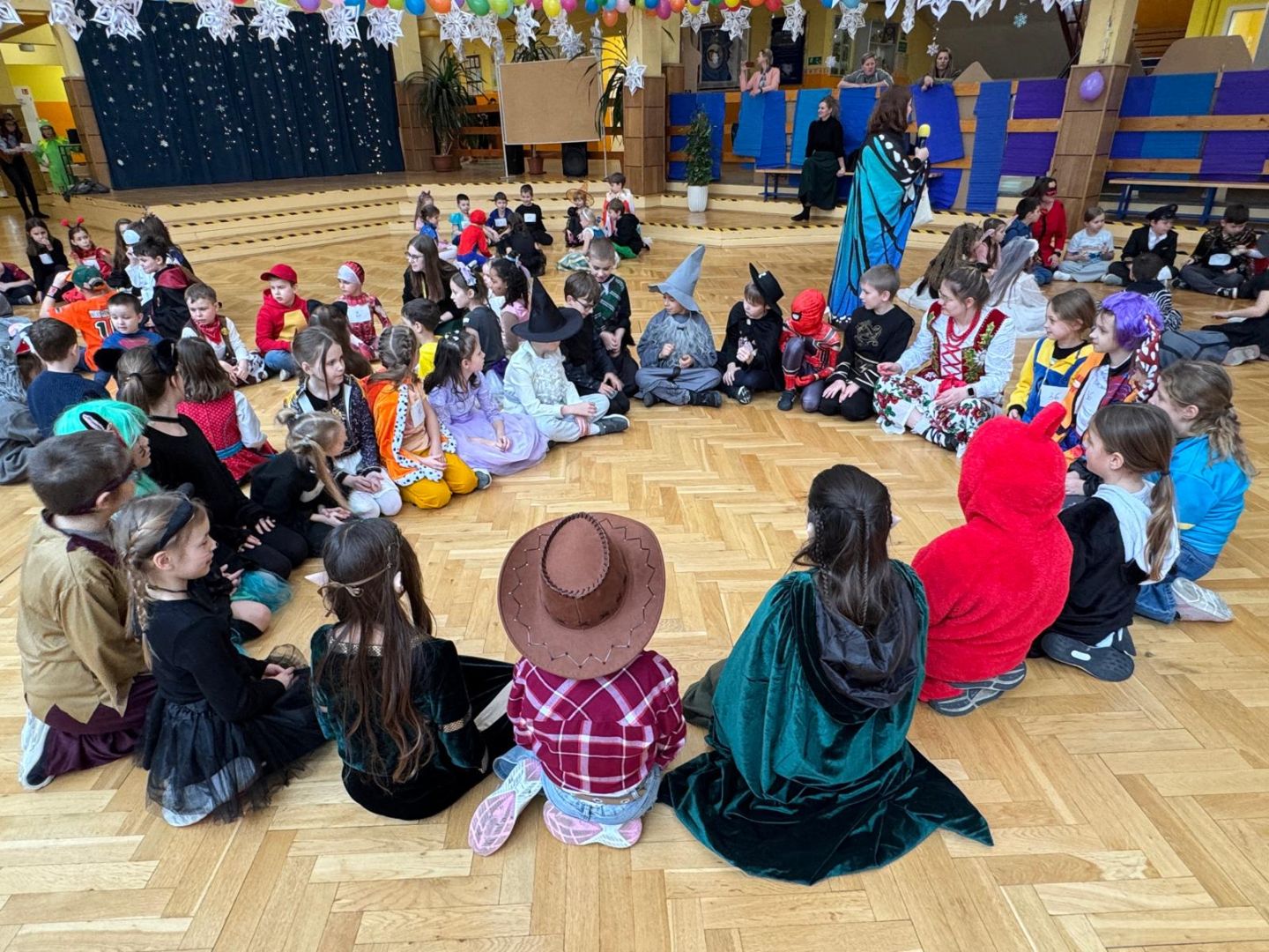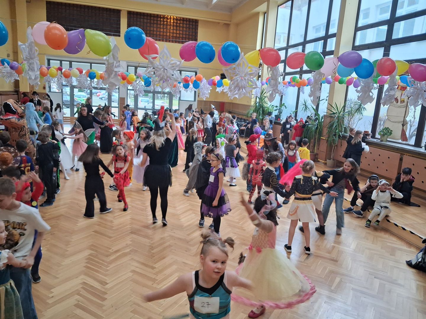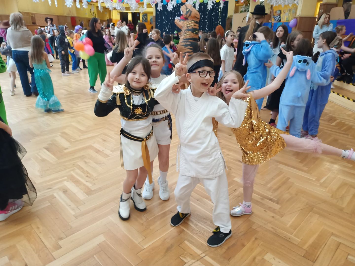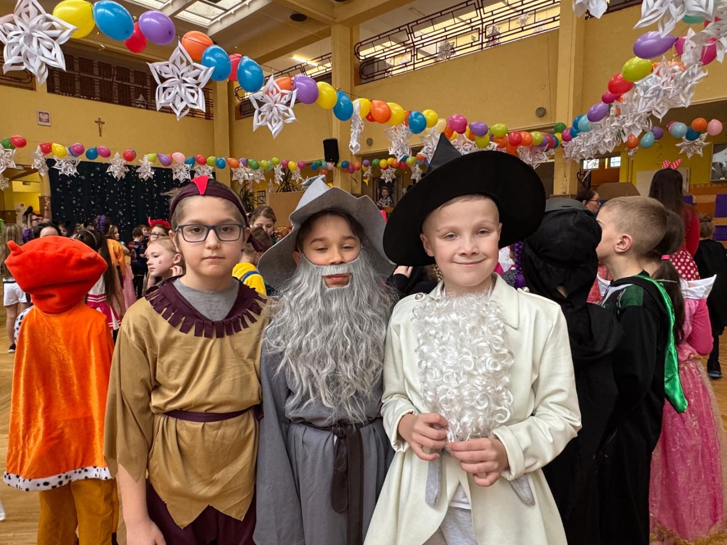 Dnia 30 stycznia 2026 r. Odbył się długo wyczekiwany bal karnawałowy dla uczniów w klas 1-3. Tego dnia szkolne forum zmieniło się w barwną, pełną dekoracji przestrzeń, która wprowadziła dzieci w radosny, karnawałowy nastrój. Uczniowie przybyli w kolorowych kostiumach przedstawiających bohaterów bajek, zwierząt, postacie fantastyczne oraz ulubionych superbohaterów. W trakcie zabawy dzieci uczestniczyły w licznych tańcach, zabawach i animacjach przygotowanych przez nauczycieli. Nie zabrakło konkursu "MISTRZ TAŃCA" który cieszył się dużym zainteresowaniem, wywołał dużo uśmiechów i pozwolił odktyć prawdziwe talenty. W przerwie na dzieci czekał‚ słodki poczęstunek oraz chwila odpoczynku. Bal dostarczył uczniom wielu pozytywnych emocji i był‚ doskonałą okazją do integracji oraz wspólnej, beztroskiej zabawy.
