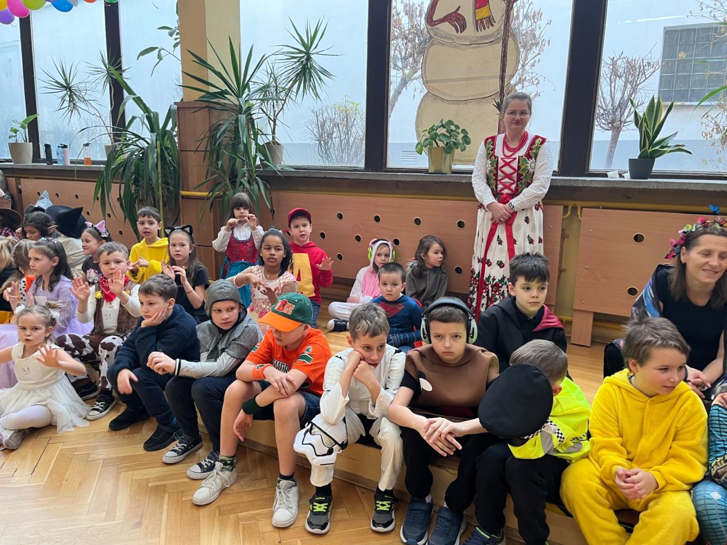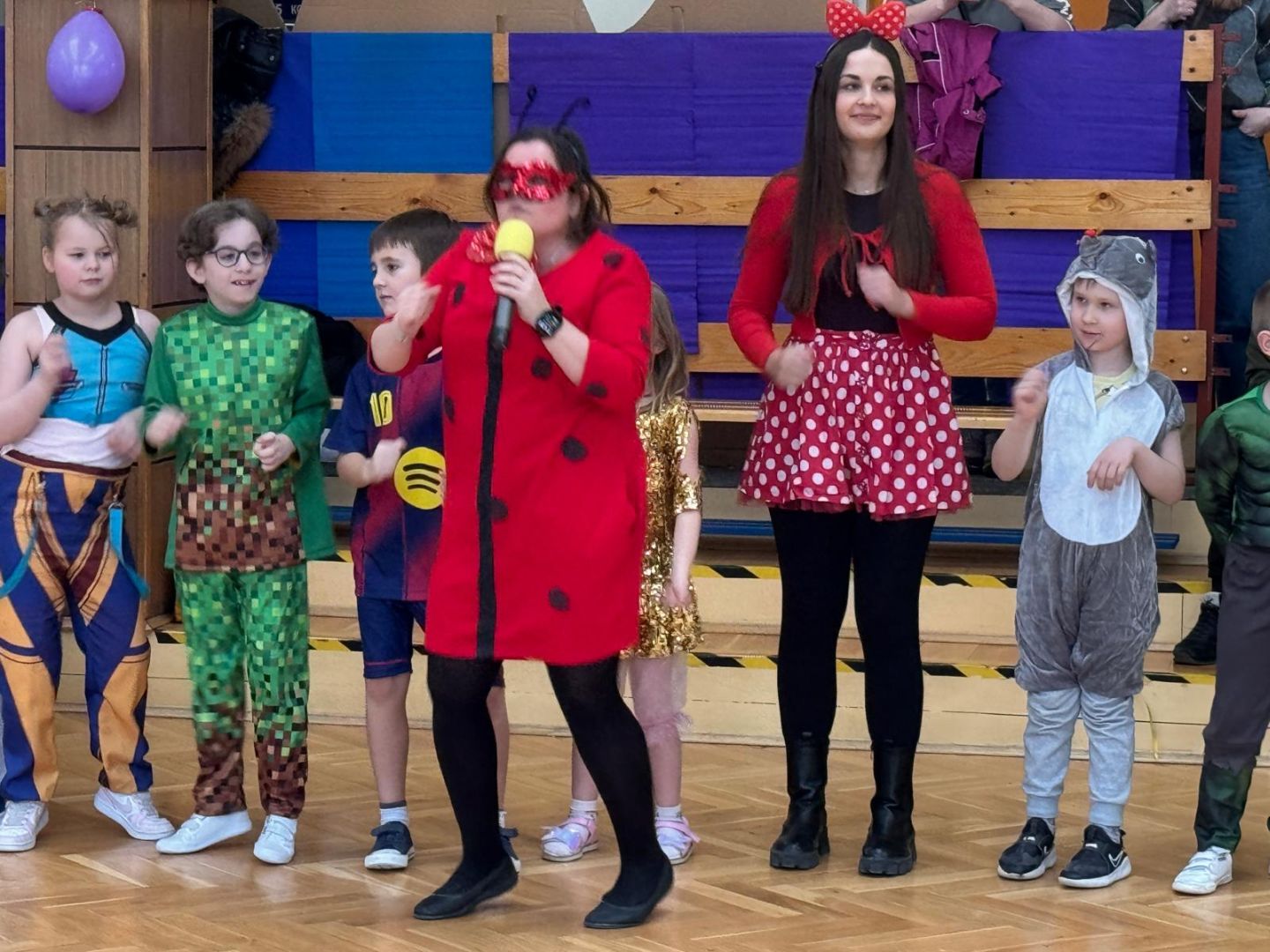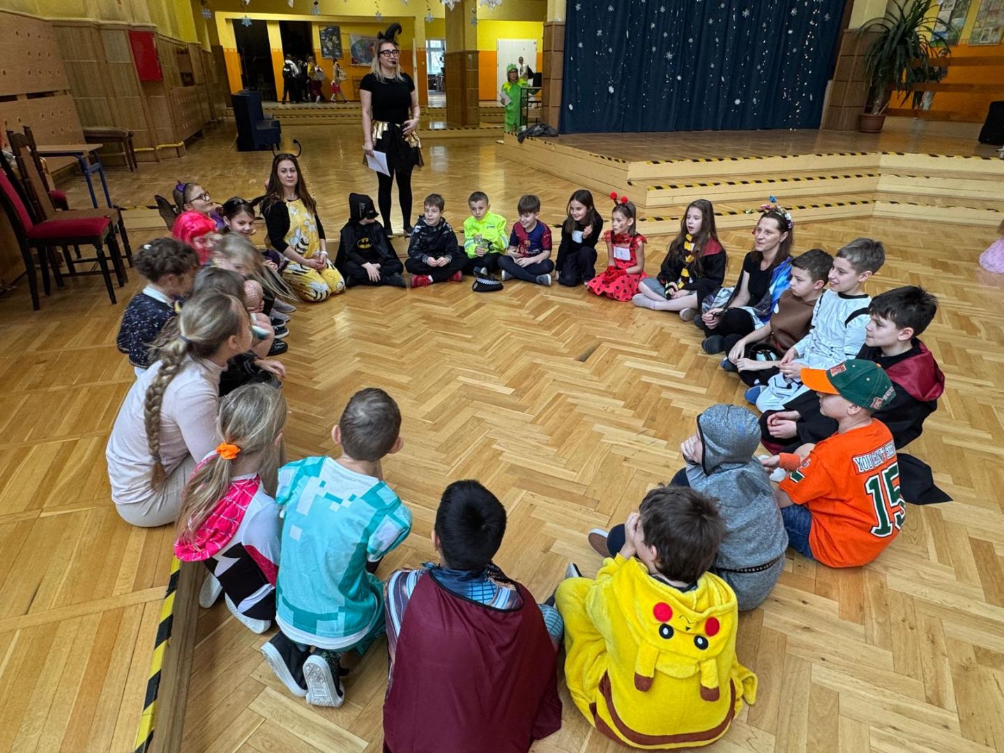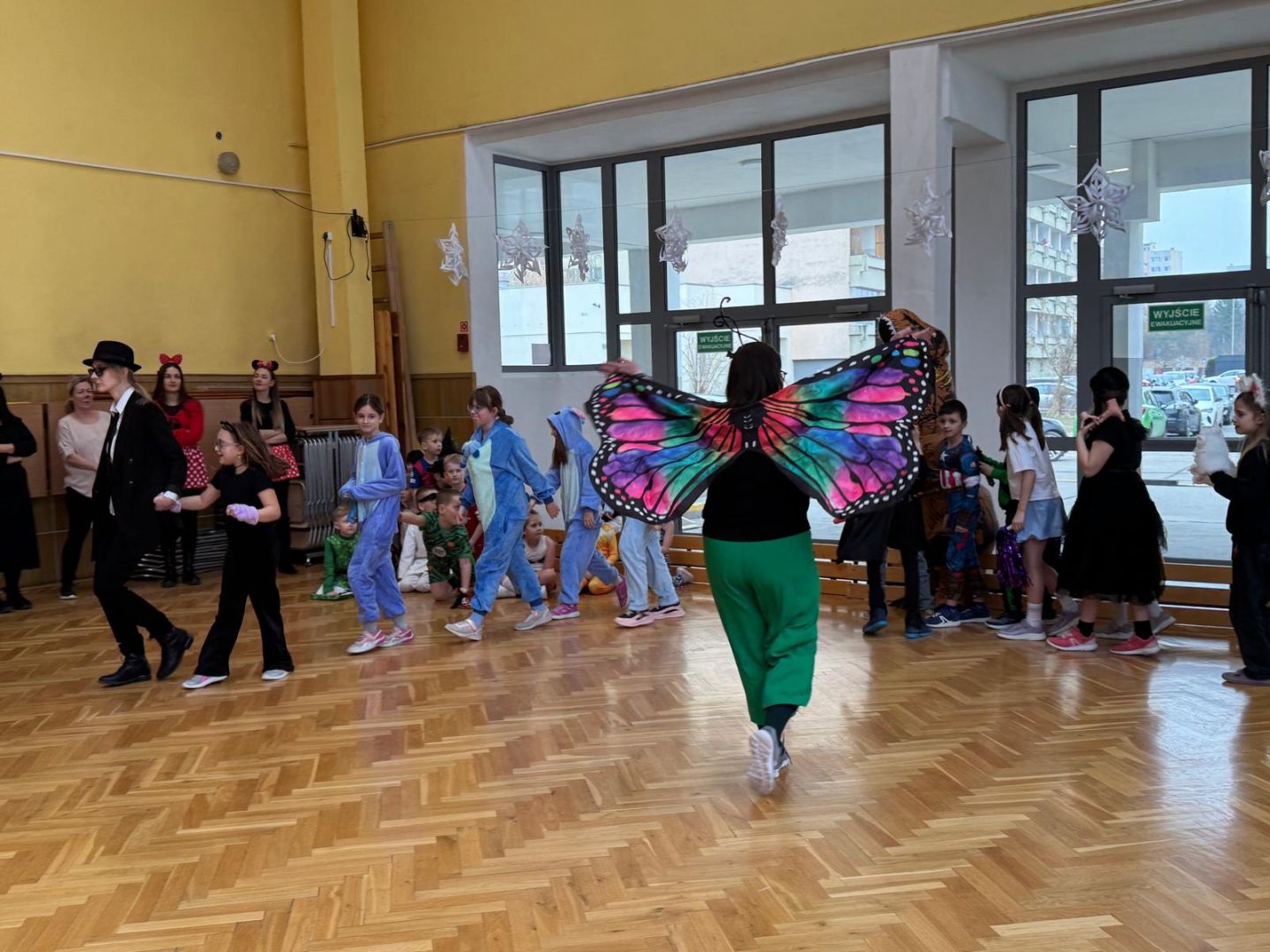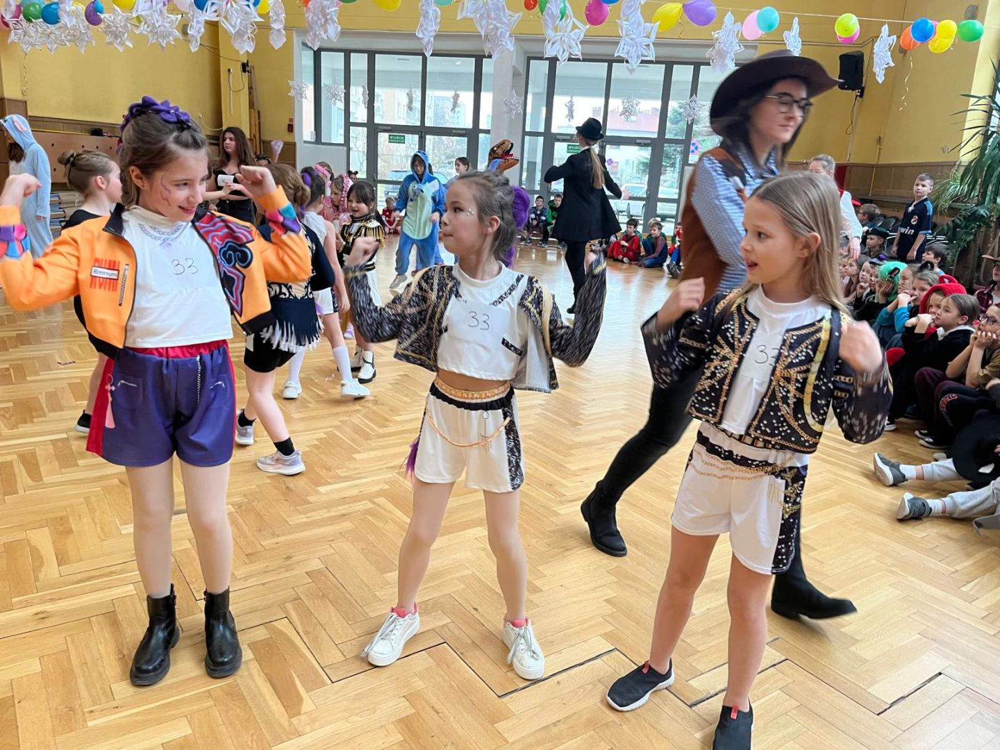 Dnia 30 stycznia 2026 r. Odbył się długo wyczekiwany bal karnawałowy dla uczniów w klas 1-3. Tego dnia szkolne forum zmieniło się w barwną, pełną dekoracji przestrzeń, która wprowadziła dzieci w radosny, karnawałowy nastrój. Uczniowie przybyli w kolorowych kostiumach przedstawiających bohaterów bajek, zwierząt, postacie fantastyczne oraz ulubionych superbohaterów. W trakcie zabawy dzieci uczestniczyły w licznych tańcach, zabawach i animacjach przygotowanych przez nauczycieli. Nie zabrakło konkursu "MISTRZ TAŃCA" który cieszył się dużym zainteresowaniem, wywołał dużo uśmiechów i pozwolił odktyć prawdziwe talenty. W przerwie na dzieci czekał‚ słodki poczęstunek oraz chwila odpoczynku. Bal dostarczył uczniom wielu pozytywnych emocji i był‚ doskonałą okazją do integracji oraz wspólnej, beztroskiej zabawy.
