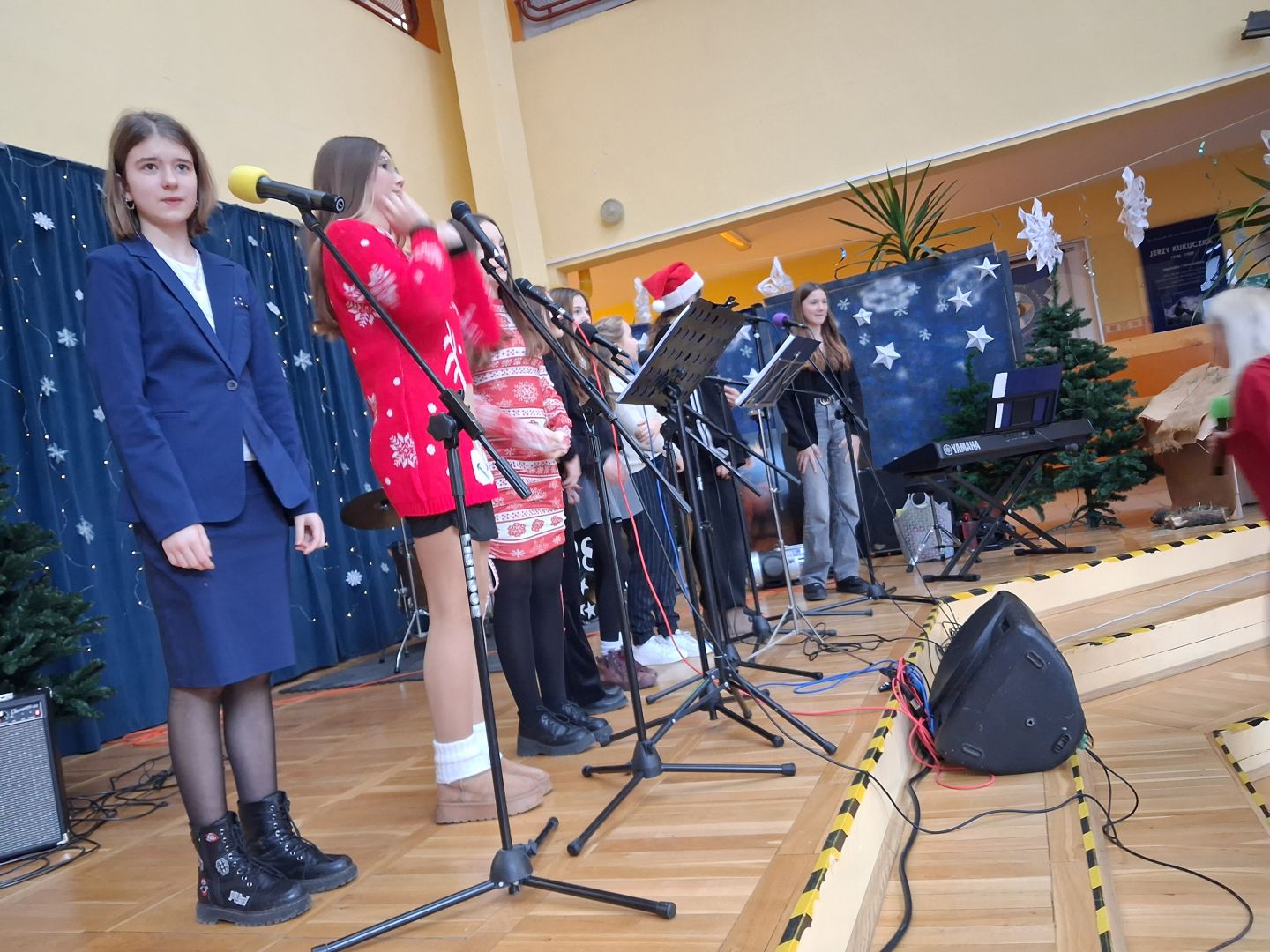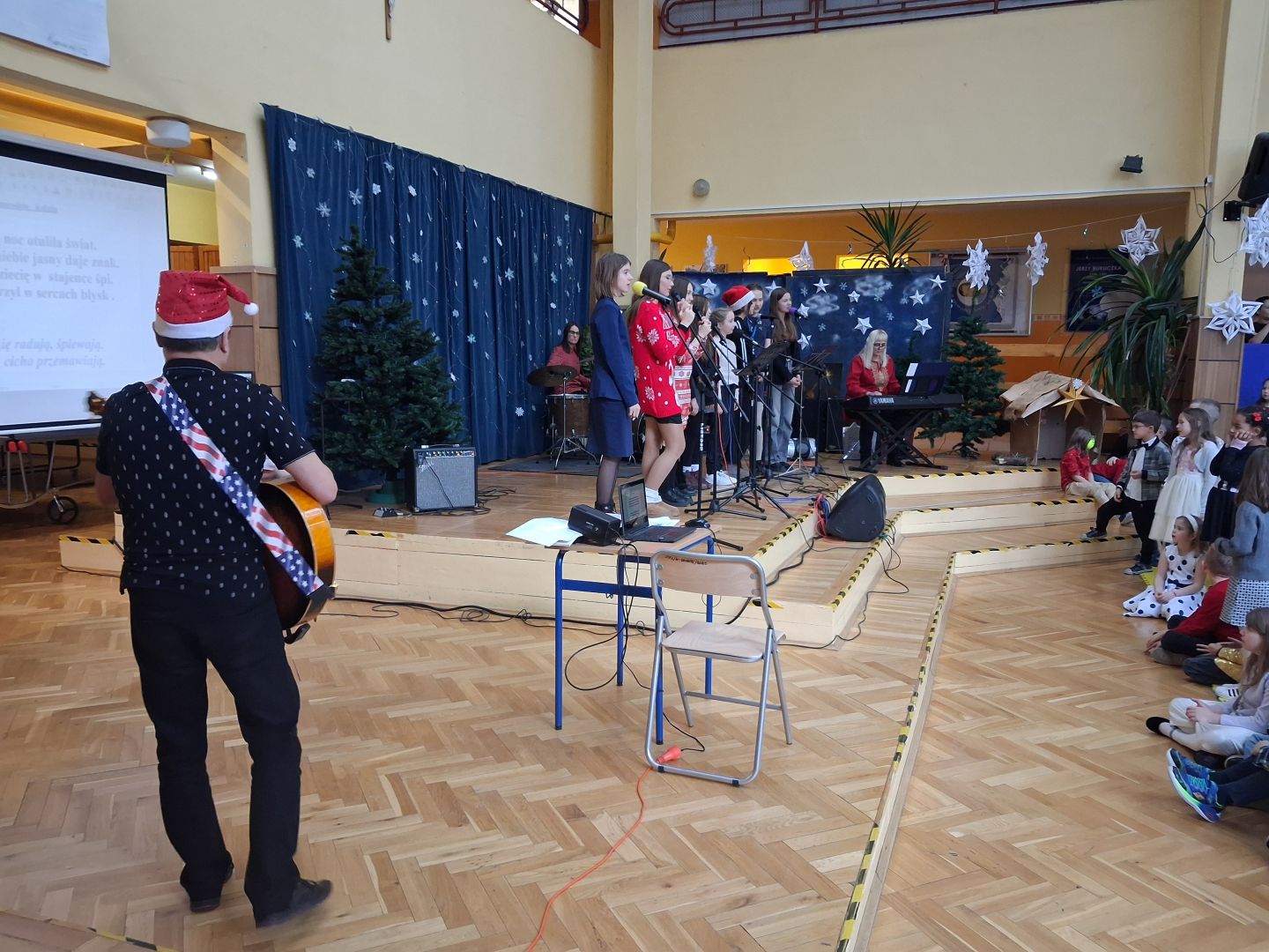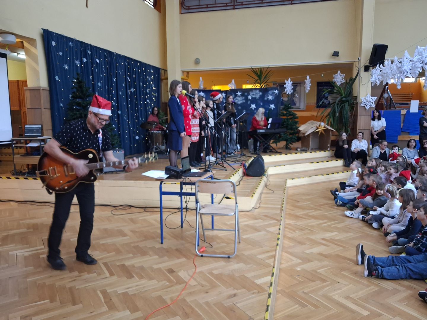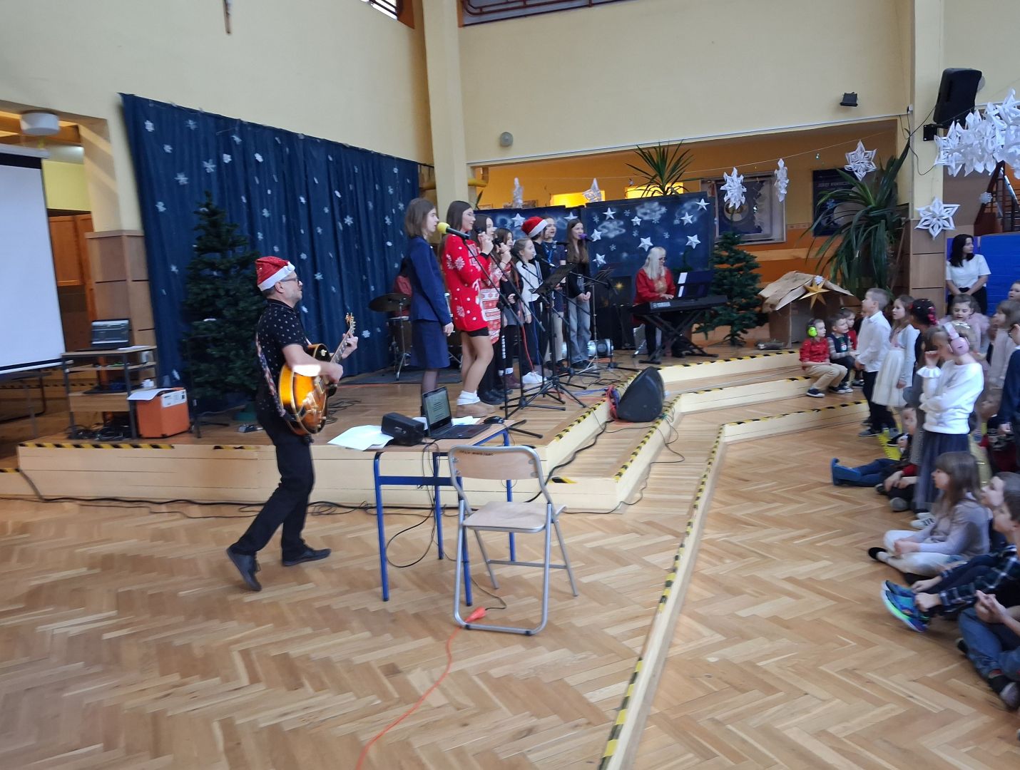 Tuż przed świętami cała szkolna społeczność wspólnie śpiewała i radowała się na szkolnym forum. Uczniowie wszystkich klas przygotowali pastorałki a przygrywali im nauczyciele: Anna Pasek-keyboard, Kinga Sobolewska-perkusja oraz Piotr Słaby- gitara. Kolędę solo zaśpiewała Zuzia Ch. uczennica klasy 3b a szkolny zespół muzyczny zaśpiewał świąteczne przeboje w języku angielskim. To był piękny koncert.