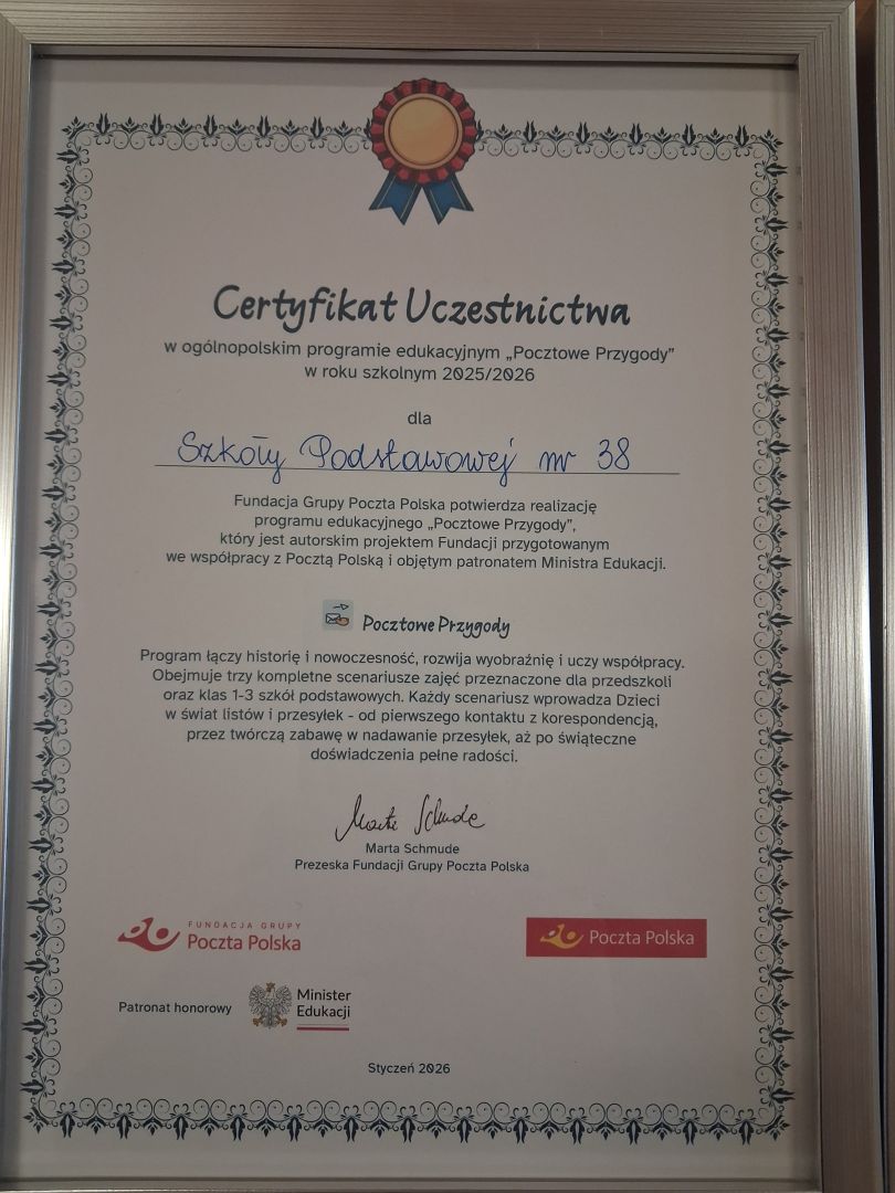 Dziękujemy za udział w programie "Pocztowe Przygody"! Z ogromną radością obserwowaliśmy, jak nasi uczniowie z ciekawością odkrywali świat listów, znaczków i paczek.